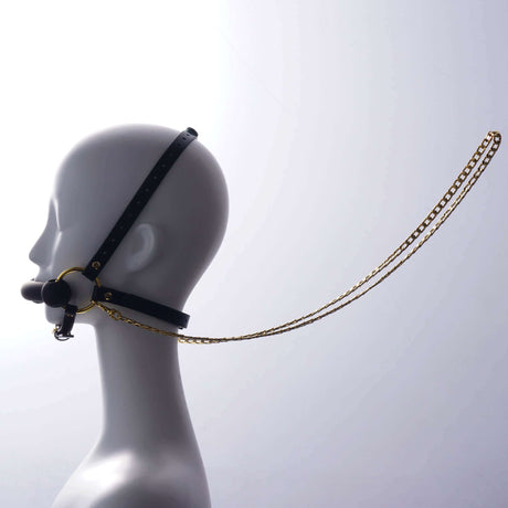 Adjustable Leather Head Restraint Harness Mouth Gag With Leash