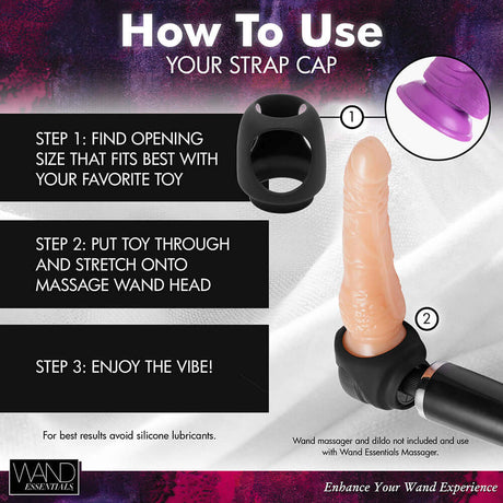 Wand Essentials Silicone Strap Cap Wand Harness For Dildos Black