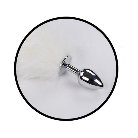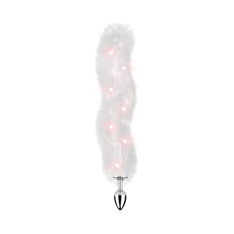 Foxy Tail Light Up Faux Fur Butt Plug With Multicolored Light Pattern White