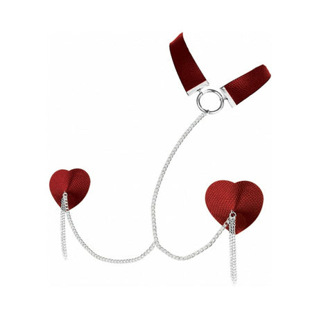 Nipplicious Dominatrix Leather Collar & Pasties With Chain Red