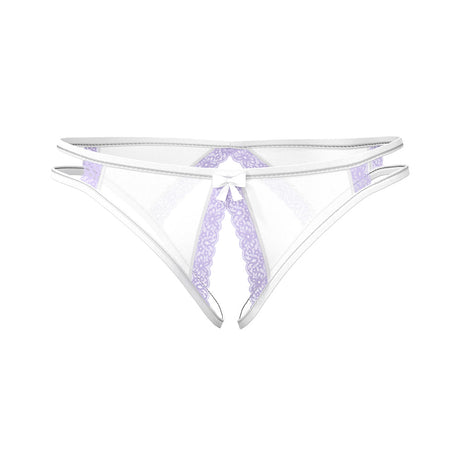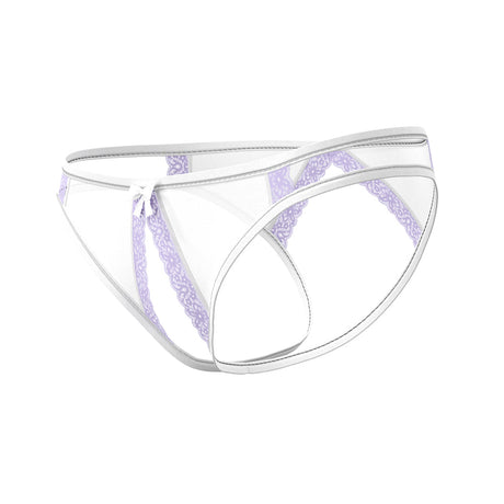 Magic Silk Sheer Passion Crotchless Low Rise Panty White/Lavender S/M