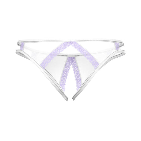 Magic Silk Sheer Passion Crotchless Low Rise Panty White/Lavender L/XL
