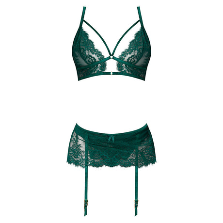 Magic Silk Evermore Bralette, Garter Skirt & Thong Set Emerald Queen Size