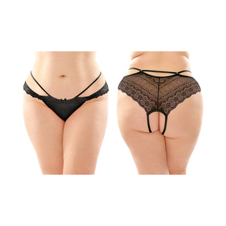 Fantasy Lingerie Posey Strappy Lace & Microfiber Crotchless Panty 6-Pack Queen Size Black