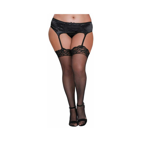 Dreamgirl Plus-Size Fishnet Thigh-High Stockings With Lace Top Black Queen