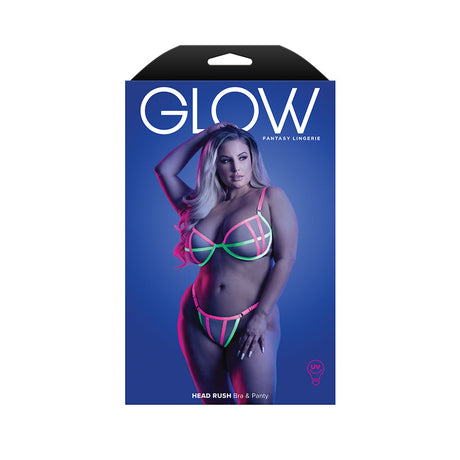 Fantasy Lingerie Glow Head Rush UV Reactive Contrast Binding Bra & Adjustable G-String Queen Size