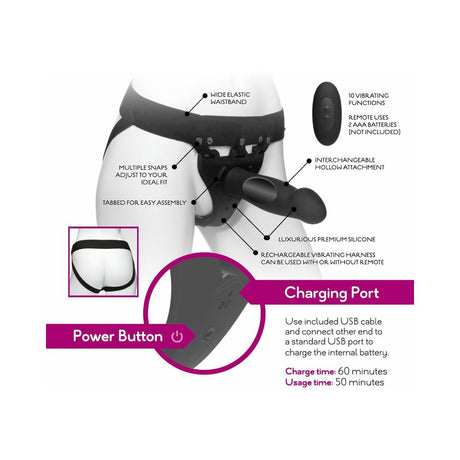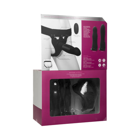 Body Extensions Hollow Strap-On 4-Piece Set with Clitoral Vibrator Black