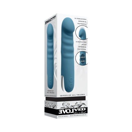 Evolved Queen Of All Trades Rechargeable Silicone Thrusting and Rotating Vibrator Teal