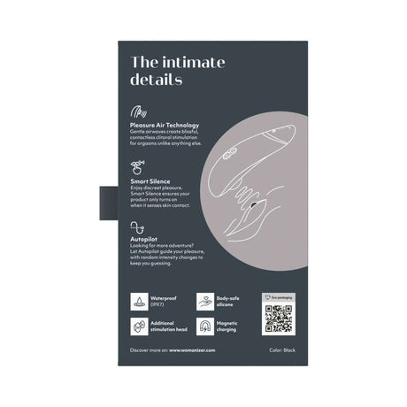 Womanizer Premium 2 Rechargeable Silicone Luxurious Pleasure Air Clitoral Stimulator Black