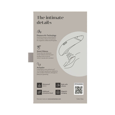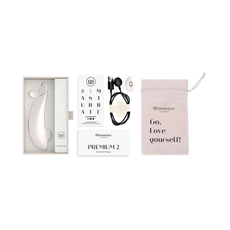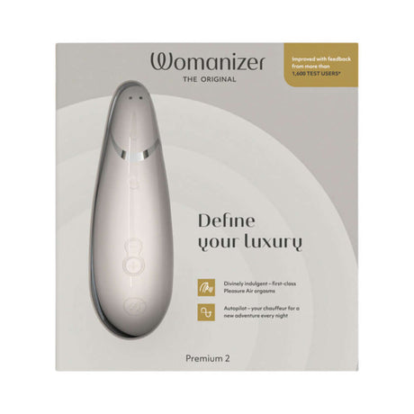 Womanizer Premium 2 Rechargeable Silicone Luxurious Pleasure Air Clitoral Stimulator Warm Gray
