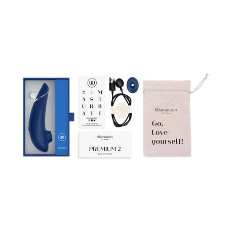 Womanizer Premium 2 Rechargeable Silicone Luxurious Pleasure Air Clitoral Stimulator Blueberry
