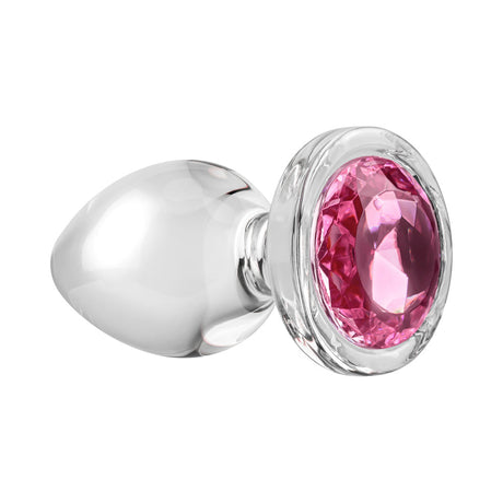 Adam & Eve Glass Anal Plug With Pink Gemstone Base Large