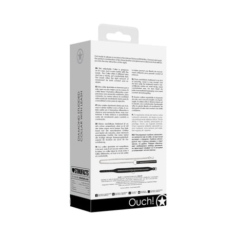 Ouch! Diamond Studded Faux Leather Collar With Leash Black
