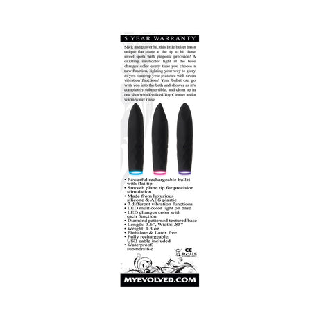 - SaleEvolved Evolved On The Spot Light-Up Rechargeable Silicone Bullet Vibrator Black Low stock$4999 USD$7999Unit price /Unavailable