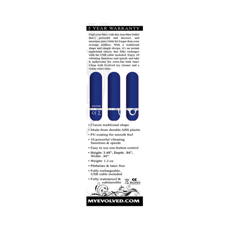 - Sold outSaleEvolved Evolved My Blue Heaven Rechargeable Bullet Vibrator Blue $2799 USD$4999Unit price /Unavailable