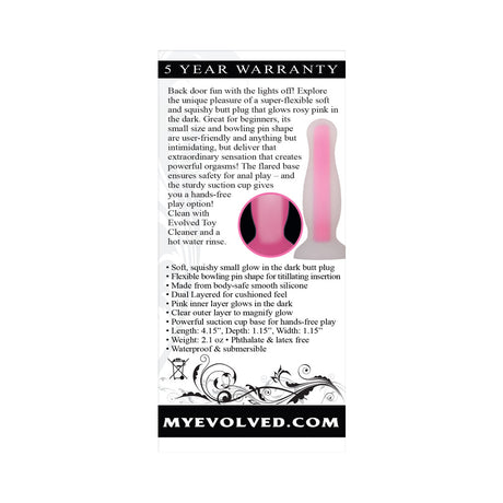 - SaleEvolved Evolved Luminous Glow in the Dark Dual Density Silicone Anal Plug Clear/Pink Small Very low stock$1999 USD$3499Unit price /Unavailable