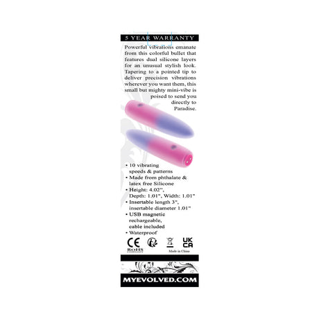 - SaleEvolved Evolved Paradise Bullet Rechargeable Dual Layer Silicone Bullet Vibrator Pink/Purple In stock$2599 USD$3999Unit price /Unavailable