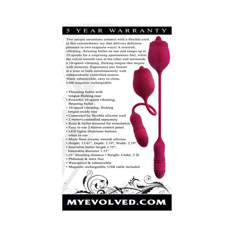 - SaleEvolved Evolved Wild Rose Rechargeable Dual-Ended Silicone Thrusting Egg & Flicking Tongue Vibrator Red In stock$9999 USD$15999Unit price /Unavailable