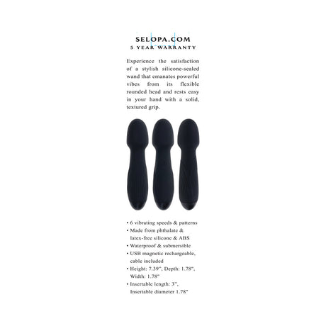 Selopa Power Trip Rechargeable Vibrating Wand Silicone Black