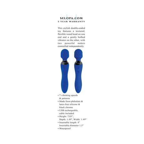 Selopa Blue Belle Rechargeable Dual-Ended Wand Vibrator Silicone Blue
