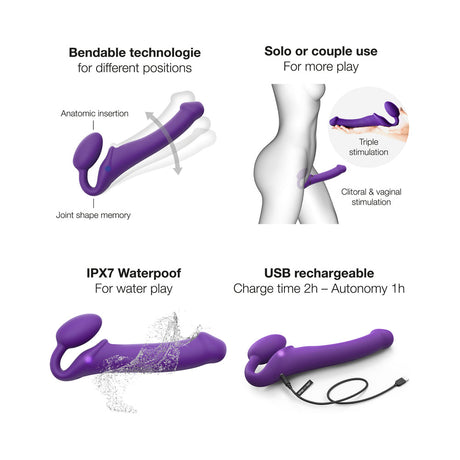 Strap-On-Me Rechargeable Remote-Controlled Silicone Vibrating Bendable Strap-On Purple M