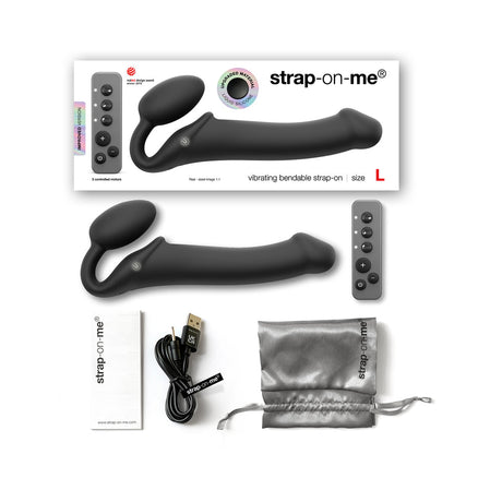 Strap-On-Me Rechargeable Remote-Controlled Silicone Vibrating Bendable Strap-On Black L