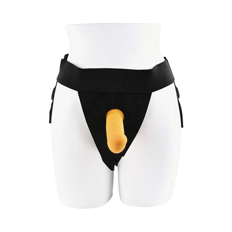 Gender X Sweet Embrace Vibrating 7 inches Dildo and Jock-Style Strap-On Harness Set Yellow/Black