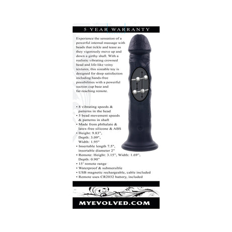 Evolved Black Thunder Vibrating Dildo with Moving Beads and Remote Control
