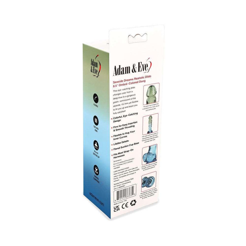 The Adam and Eve Seaside Dreams Realistic Dildo 8.5 inches brings ocean-inspired pleasure to your playtime. Its stunning ombre design, blending blue and aqua hues, looks just as beautiful as it feels. Crafted from soft, body-safe TPE, this lifelike dildo features a realistic head, textured veins, and full balls for a natural, satisfying sensation.
