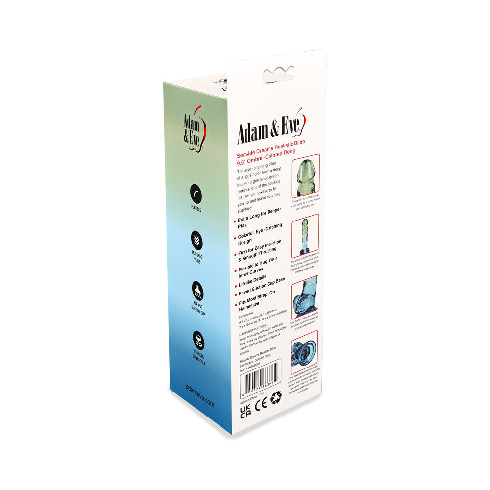 Fill up with colorful, flexible fun with the Adam and Eve Seaside Dreams Realistic Dildo 9.5 inches! Inspired by the sparkling blue and green hues of the ocean, this stunning ombre dildo is a feast for the eyes and a delight for your body. Crafted from soft, flexible TPE, it delivers lifelike sensations that feel just like the real thing — smooth at the tip, veined along the shaft, and complete with realistic balls for that perfect finish.