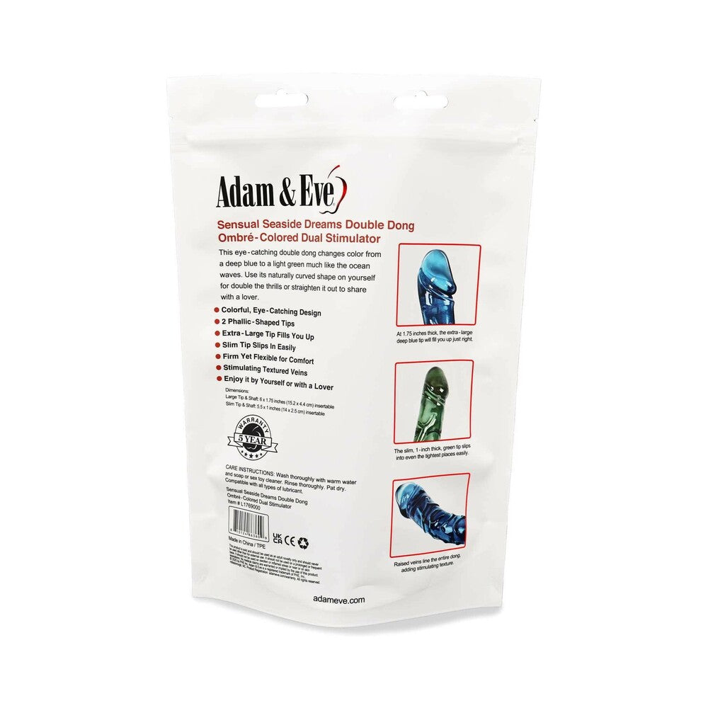 Have the sexy couples fun you’ve been dreaming of with the Adam and Eve Sensual Seaside Dreams Double Dong, a stunning toy inspired by the hypnotic blue and green hues of the ocean. Crafted for shared pleasure and versatility, this double-ended dong features two realistic phallic heads and a gently curved shaft that delivers deep, sensual satisfaction for both partners.