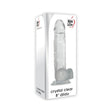 Dish out delight with this dazzling crystal clear dildo with stimulating lifelike features.Get a Super-Sexy ViewThe dildo is completely transparent, so you can see every explicit detail.Feels Extremely LifelikeThe shaft is firm to the touch for easy penetration, yet flexible enough to fit your inner curves for a comfortable fit.Maximize Your Stimulation with Multiple Lifelike DetailsThe knob-shaped tip slips in easily for comfort. The textured veins running down the shaft thrill you with every thrust. The balls are perfect for grinding on your love nub. And you can use them as a handle too!Go Hands-Free with Suction Cup BaseThe dildo comes with a built-in suction cup that sticks to most smooth, non-porous surfaces like many shower walls, wooden headboards, and even kitchen counters. The suction cup lets you use the dildo hands-free as you take it from behind or ride on it. The sturdy suction cup keeps the dildo securely in place no matter how wild you get!The dildo fits most strap-on harnesses. It's compatible with water-based and silicone-based lubes. Wash it in warm, soapy water and spray with sex toy cleaner after each use.Features Clear large dildo and balls Firm, yet flexible enough for a realistic feel Powerful suction cup base for hands-free play Vein texture holds on to lube, adds more thrills with each thrust Fits most strap-on harnesses Use with water-based and silicone-based lubes Specifications Length: 8.25 inches Insertable Length: 6 inches Width: 1.6 inches Material: TPE