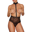Allure Love Bug High-Waisted Lace Thong with Tie Back and Lace Collar Black O/S