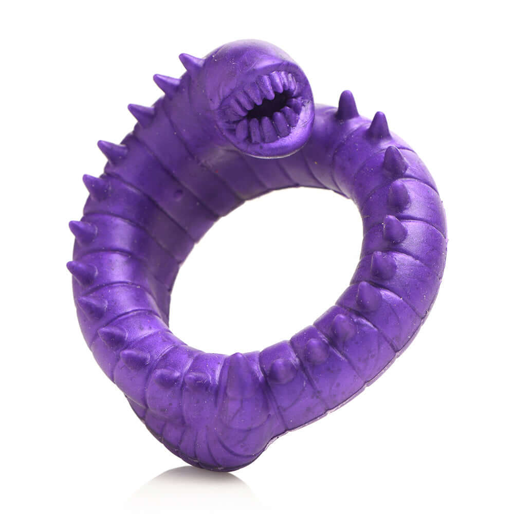 Enhance your rod with this toothy, purple, galactic worm! This Slitherine C-ring is made out of super stretchy and plush silicone that is phthalate-free and body-safe. The deep purple color and the spiked spine stands out on your cock so you can penetrate your partner's defenses with your ferocious companion. It can fit over the shaft along or also be stretched to fit around the shaft and under the balls, too! It can enhance your playtime, increase the intensity of climax, and help you stay rigid for longer! Combine this with any fantasy roleplay or creative scene a little more fun!The desert heat is enough to kill even the strongest warrior. Not a drop of water permeates the dry air and punishing rays of the sun. Only the most aggressive and cunning survive. We wear water-suits to venture out in the early morning, before the heat is at its worst. The giant, blind worms of the desert can hear us and feel our steps so we dance among the dunes and walk erratically. My guide knows the way to a reservoir of water deep underground and I am here to discover what it can offer our people farther out in the city of Faen Ymir. As we enter the cave, the air immediately cools and I shiver. Eager to feel the wetness on my face and body, I strip out of my suit as soon as I see my guide do the same. They slide into a stream and my heart skips a beat as their naked, wet body reemerges. They are stunningly beautiful, and with so much need to wear these suits it is rare to ever see so much bare skin on anyone. I can't help but feel myself begin to engorge and stiffen. They smile knowingly, and cup their hands to the water to drink. I do the same but then yelp in shock and jump out of the water. What is it? they ask with concern in their voice. I can't tell what's wrong until I see a dark purple worm with spikes and teeth that has, to my horror, latched on to my shaft! Ah! It's a slitherine worm! They blush pink and begin to laugh. I'm sorry, there's only one way to get rid of it... they come closer, pulling me to the water's edge. You have to relax. My heart races. I don't think I can relax with this on my rod! I say, deeply disturbed. They pause, then smile. I.. may be able to help you. Then they climb on top and slide me inside where I can feel both their wetness and their heat!Use with water-based lubricant. Wash with warm water and toy cleaner after each use. Pat dry and store in a cool, dry location, away from direct sunlight and separated from other toys. Fantasy C-Ring: This deep purple galactic worm wraps around your shaft to keep you hard longer! Stretchy Silicone: This phthalate-free, body-safe, stretchy silicone easily stretches to fit over the shaft and the balls comfortably. Perfect for longer scenes and suitable for users of any experience level. Enhanced Performance: Last longer, enhance your climax, and keep yourself rigid with this C-ring! Measurements - Overall: 2.9 in. Length x 2.7 in. Width, Inner diameter (unstretched): 1.6 in. (40mm) Note: Do not use with silicone lubricants.