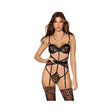 All-over leopard lace and fishnet open-back teddy with strappy details and fancy gold hardware Underwire cups with shiny satin and leopard lace combination Adjustable/attached garters and adjustable hook-and-eye back closures Shown with Style 0432 thigh-highs; sold separately Size XL: Size 14-16, Cup D/E, Weight 160-180 lbs., Bust 38-40in., Waist 31-33in., Hip 40-42in.