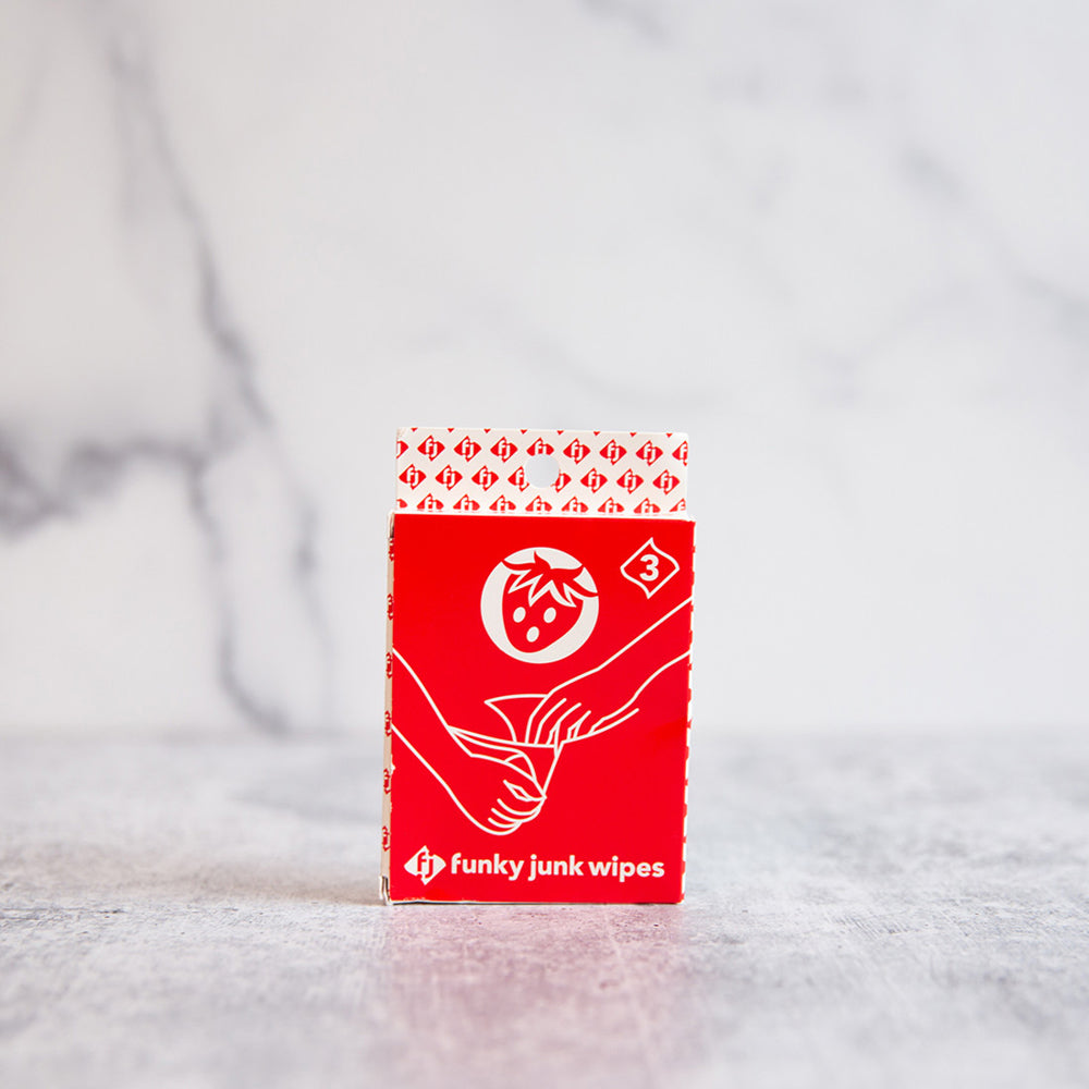 Funky Junk wipes leave your junk smelling *fantastic* and can be used before, after, and during sex!Funky Junk Wipes come individually sealed and small enough to discreetly travel anywhere that you do. They're a great way to freshen up before, during, or after getting down and dirty. Each wipe packs a fragrant – yet cleansing – punch of strawberry flavor and can be used as an alternative to any non-flavored wipe products.Features Strawberry-scented Travel-friendly Safe for sensitive skin Ingredients: Water (Aqua, Eau), Glycerin, Polysorbate 60, Natural Flavor (strawberry), Sucralose, Hydroxyethylcellulose, Potassium Sorbate, Sodium Chloride, Citric Acid, Sodium Benzoate, Gluconolactone