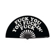 13in.H x 24.5in.L x 0.75in.W (unfolded) High-quality Satin Glossy Bamboo Ribs Cool yourself in style with this in.Fuck You You Fuckin’ Fuckin. large-sized folding hand fan. Simple and fun with just the right attitude! Made of glossy bamboo ribs and high-quality satin material.