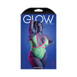Fantasy Lingerie Glow Spotlight Contrast Elastic Lace Teddy with Snap Closure Neon Green Queen Size