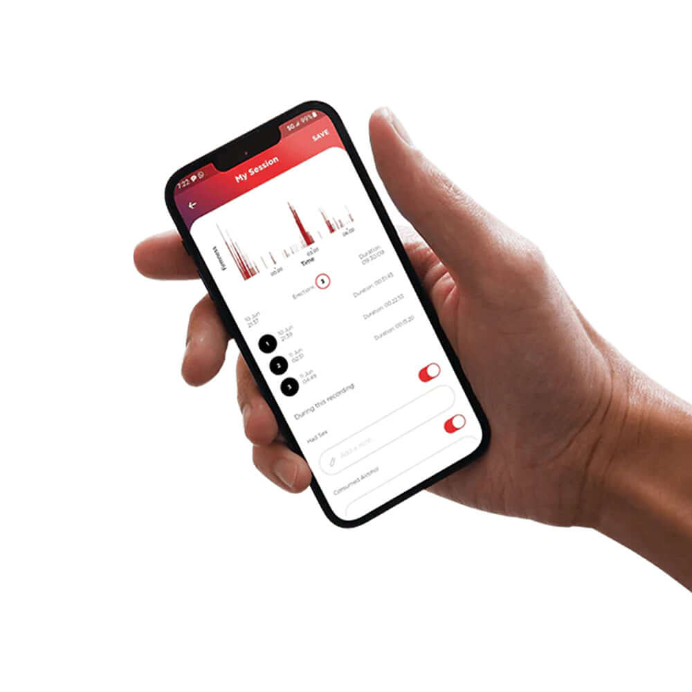 With built-in sensors that connect to the FirmTech app via Bluetooth, the FirmTech Tech Ring tracks erection firmness, duration, and frequency—including nocturnal erections—giving you a comprehensive erectile fitness score. This data helps you better understand your body and maintain peak performance over time.