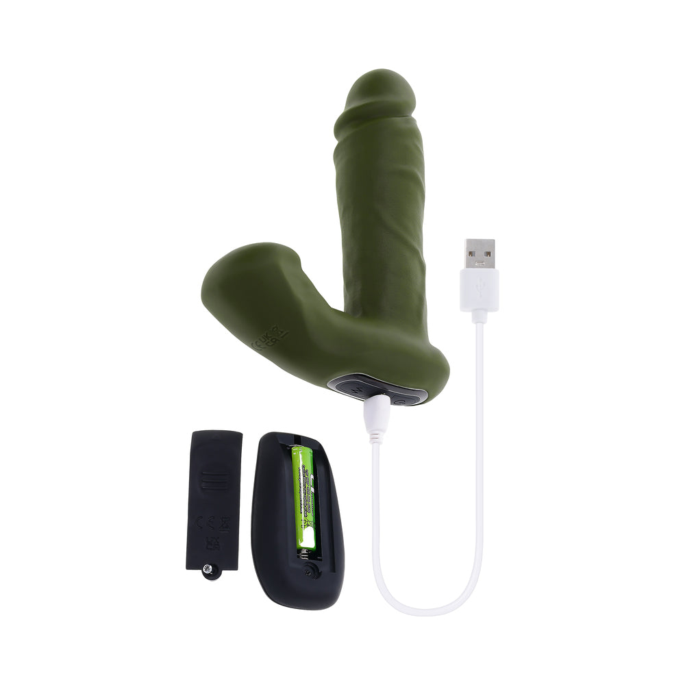 Expanding with girth as it thrusts and vibrates in both shafts, this chunky dual toy sports a realistic crowned head with vein textures on the main shaft, and a hunky muscular torso design on the base sha' Flexible at the base and head, the very soft and squishy liquid silicone delivers a super-smooth feel and can be operated directly or with its long-range remote. 10 vibrating speeds and patterns in both shafts 3 girth-enlarging, thrusting speeds Made from phthalate and latex-free liquid silicone and ABS Height: 6 in., Depth: 4.53 in., Width: 1.73 in. Insertable length: 5 in., insertable diameter: 1.53 in. Remote Height: 2.93 in., Depth: 0.8 in., Width: 1.54 in. Remote range: 30 ' Waterproof USB magnetic rechargeable, cable included Remote uses 1 x AAA battery (not included)