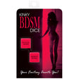 Players take turns rolling the dice and carrying out the actions with their lovers. One die offers a BDSM action and the other is a sex position that players combine together. The roller decides how to translate each BDSM act and combine it with the sex position. The second player rolls again when ready to switch to a new position and play continues. BDSM equipment is not necessary as players can use belts, neck ties, scarves, or robe ties as suitable replacements. Includes two 0.75 in. BDSM dice.