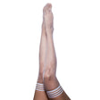 Faithful and fun. Kicky patterns are just as comfortable at work or at play. The strong, but gentle Silicone grip bands keep them in place. Best of all they are built to last. Sleek, slender, and polka dotted. Polka Dot thigh high tights from Kixies. Color White. Hosiery Size D. Height 5 ft 5 inches to 6 ' Weight 125 pounds to 170 pounds. Thigh circumference up to 25 inches.Great for night clubs, raves, costume partys and much more.Available in A,B,C,D sizes.