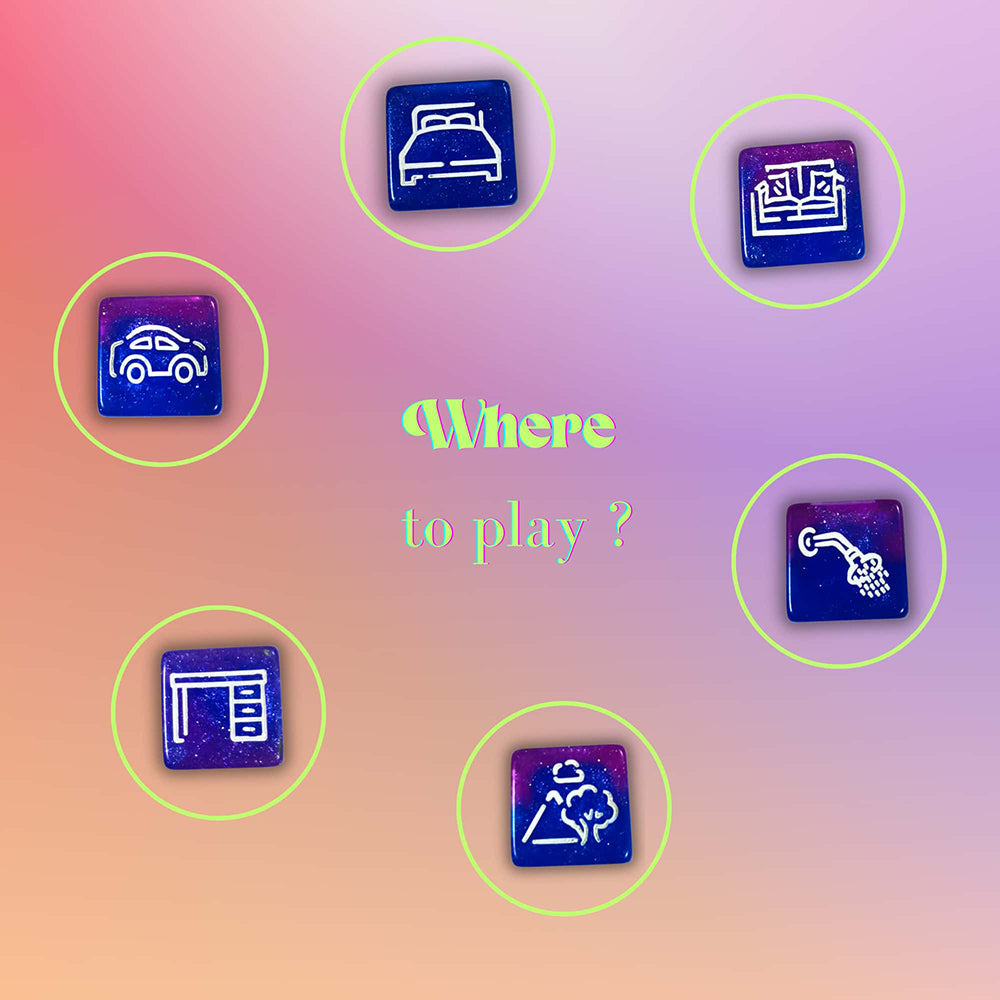 The dice are rolled... and your nights will never be the same! Out with the routine, in with the unexpected! These seductive dice transform every toss into an adventure: one action, one body part, and one location where anything can happen (fair warning: the kitchen may never feel the same). And the fun doesn't stop there€“because we're clever like that, the box moonlights as a door hanger. Hang it up to say: "Do Not Disturb... unless you're feeling really bold."Why play it safe when you can play with chance? Let your nights (or cheeky afternoons€“we're not picky) come alive with a little mischief.So, are you ready to roll into the unexpected?