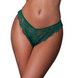 From Magic Silk's Evermore collection, this flirty emerald panty features a split crotch design, scalloped edges, and a dainty satin bow. Made from a luxurious emerald green lace, this panty offers a perfect blend of seduction and sophistication, making it a must-have in your underwear selection.Fabric Content: 90% Nylon, 10% SpandexFits US sizes 12-18.