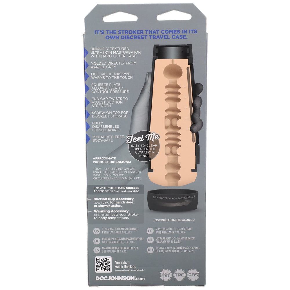Karlee Gray has joined Doc Johnson’s Main Squeeze line with her own hard-case masturbator. It's designed to put the power in your hands and features a squeezable grip and suction-adjusting cap that let you vary each stroke. Molded directly from Karlee's body, this ULTRASKYN stroker looks and feels just like the real thing. Each ULTRASKYN sleeve features a different textured interior, making your experience as unique as each of our sexy Main Squeeze girls. The double-cap hardshell design doubles as a discreet travel and storage case, keeping your Main Squeeze fresh and ready for whenever the mood strikes. Uniquely Textured ULTRASKYN Masturbator with Hard Outer Case Molded Directly from Karlee Grey Lifelike ULTRASKYN Warms to the Touch Squeeze Plate Allows User to Control Pressure End Cap Twists to Adjust Suction Strength Screw-On Top for Discreet Storage Fully Disassembles for Cleaning Phthalate-Free, Body-Safe Total Length: 9 in. (22.9 cm) Usable Length: 8.75 in. (22.2 cm) Width/Diameter: 3.5 in. (8.9 cm) Circumference: 10.5 in. (26.7 cm)