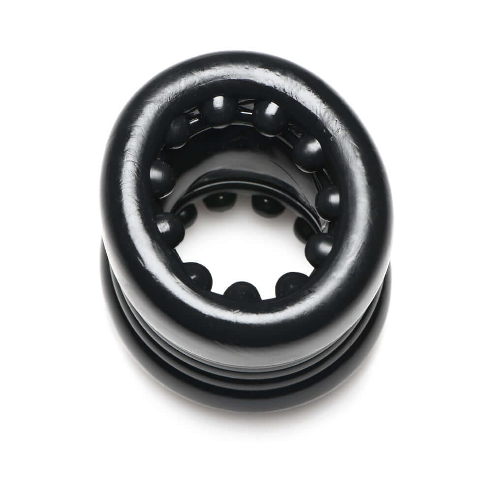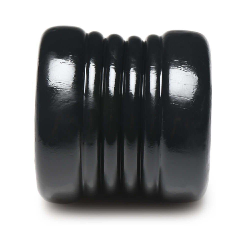 Enhance your pleasure and extend the duration of your play when stretching your balls! This stacked ball stretcher is made out of body-safe, phthalate-free, stretchy TPE and fits over the balls and firmly holds them away from your sha' The stacked layers give you just enough stretch and pull without any forcefulness or pain. They have a good amount of give to them so they'll remain comfortable while being worn for a long duration and moving around from position to position. At both ends of the tunnel are rows of textured nubs that add extra stimulation and grip. Use only with water-based lubricants for best results and avoid petroleum products. To clean, use warm water and mild soap, then rinse it off and spray it with a toy cleaner before letting it air dry.Use some lube on your shaft and balls, then rub lube on the inside of the tunnel. Gently start to tug down on your balls, relaxing as much as you can. Stretch it open and pop one ball in at a time. Once it is on, tug gently and make sure enough lube is used so the skin isn't being pulled. Start to stroke yourself. Feel how your hard shaft pulses now that the balls are tugged down, keeping you from blowing your load too soon but enhancing the feeling and sensation! Let your partner stroke you, suck you, or ride you until you finally blow! Pleasure Enhancing: Stretch your balls away from your shaft to enhance duration and pleasure! Soft and Stretchy: Enjoy the soft, stretchy material that is easy to stretch and fit over the balls. Textured Nubs: Rows of textured nubs line both ends of the tunnel to add extra stimulation. Body-Safe TPE: Made out of phthalate-free TPE. Measurements:Overall: 1.9 inches x 1.9 inches.Inner diameter (unstretched): 0.94 inches.