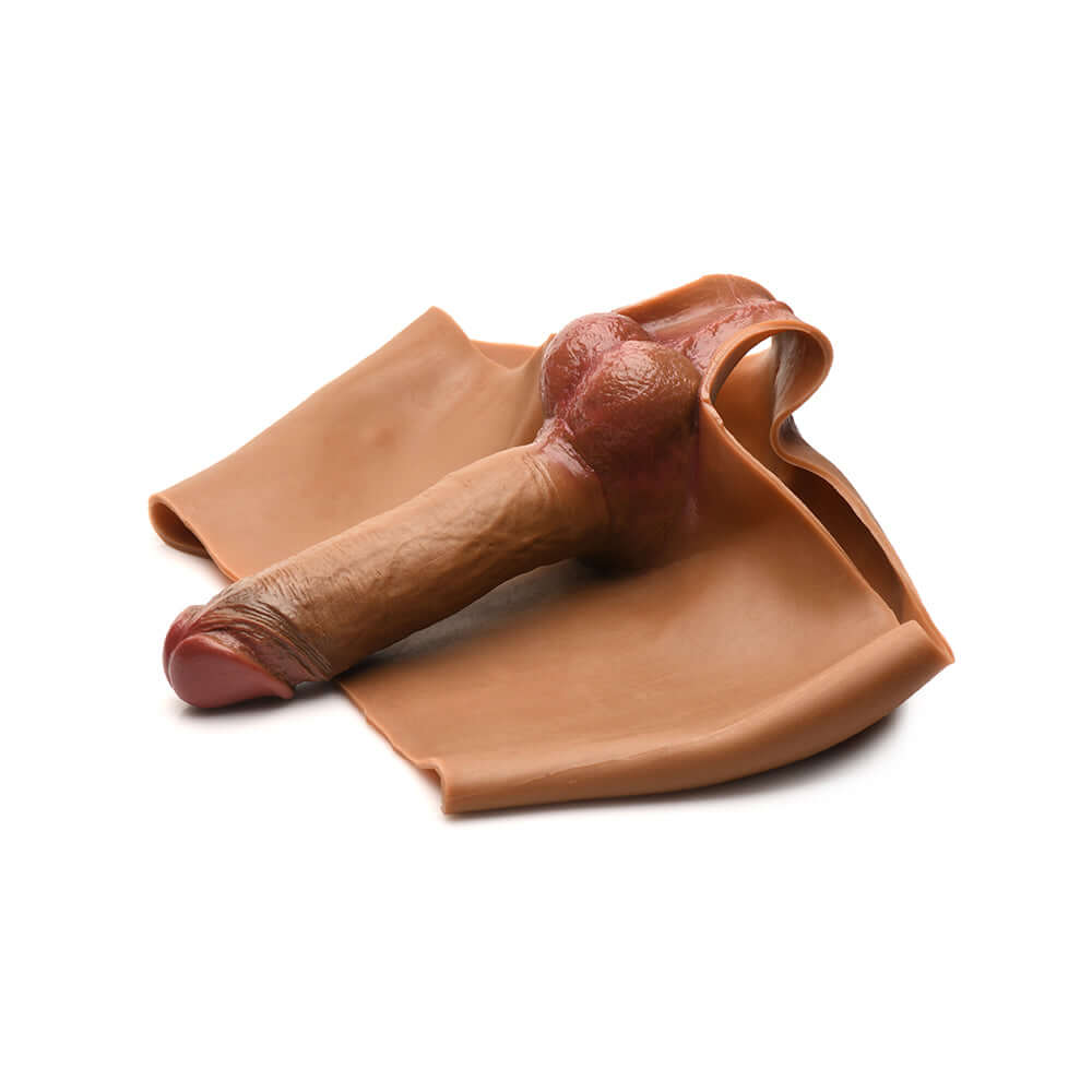 These silicone panty-shorts give you a sexy opportunity to live out your wild fantasies, your hottest kinks, or to simply enjoy gender-affirming panties! The stretchy, phthalate-free silicone panties have a large, poseable dildo with balls at the front so you can angle it to the right spot for your partner. The look and feel is realistic so you can really play into the fantasy and make it a reality! The back of the panties have an anal opening so you can enjoy stimulation without removing the panties. Be sure to measure your hips and waist to get a perfect size and fit.Spice up your night and really enjoy your masculine side with these panties! After taking time to carefully put them on, slide a pair of pants over them to go full masculine or wear a dress or skirt to combine your masculine and feminine sides and have a sexy surprise under the skirt! When you're ready to play, use water-based lube and enjoy pleasing your partner with your new dong! If you want to protect the rod from bodily fluids, wear a condom over it for safety. As you get your shaft deep inside your partner, enjoy the look of surprise and enjoyment on their face as you become the man of their dreams! If you feel open to it, open your backdoor to them and let them play with your booty, as well! Turn around and let them inside of you! It will be a fun night of taking turns and exploring holes!Apply talc-free baby powder or 100% cornstarch to skin and panties before wearing. Do not pull on the panties as this may cause the material to tear. Instead, roll the panties up/down over your skin when putting them on or taking them off. Wash with warm water and mild soap after each use. Air dry and store in a cool, dry location, away from direct sunlight and separated from other toys. Stretchy Silicone Panty-Shorts: This phthalate-free, stretchy silicone panty-shorts fit snug against the skin for comfort. Realistic, Poseable Dong: Pose the dildo to get at different angles. This dong has a realistic look and feel and a pair of balls at the base. Fantasy Roleplay: Live out your fantasies and kinks or enjoy gender-affirming panties. Anal Opening: Enjoy backdoor stimulation! The anal opening allows for you to get stimulated from behind without removing the panties! Measurements:Fits 21 inches to 34 inches waist circumference, 32 inches to 44 inches hip circumference.Dildo: 6.8 inches insertable length, 1.8 inches widest insertable diameter.