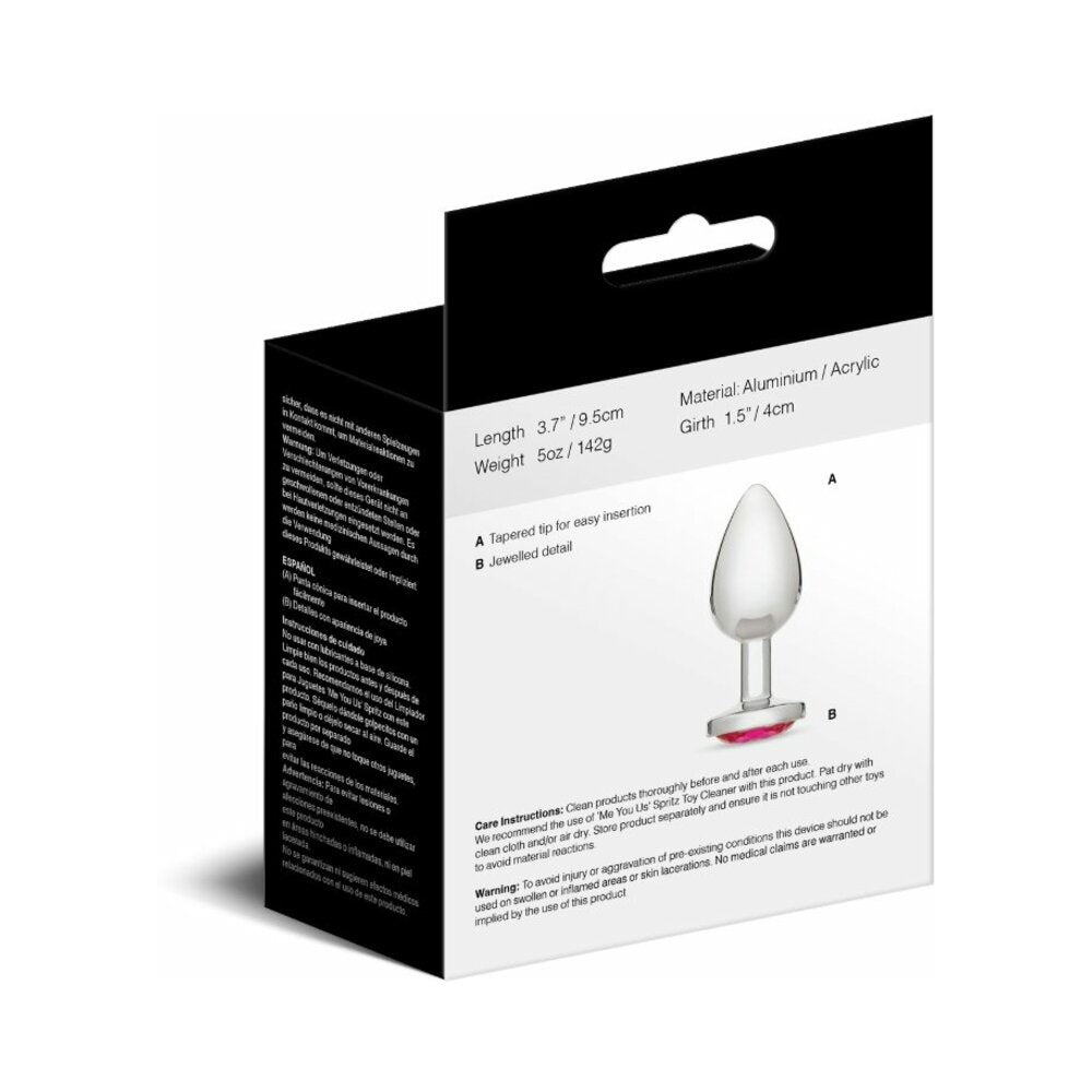 Delight in a luxurious experience with this large-sized, expertly crafted aluminum butt plug from the Me You Us collection.Its firm, sleek exterior ensures smooth and satisfying penetration for experienced anal play lovers. The Me You Us Crystal Jewels plug features a glittering jeweled clear base that will add elegance and sophistication to any toy collection. This plug is made from body-safe aluminum, so it's hygienic and safe everyone to use. It can even be heated or cooled to change sensations during wear making this toy adaptable to all kinds of adventures. This luxurious toy is a perfect embodiment of style and pleasure.Made from a firm material that ensures smooth insertion and prolonged wearability, the Me You Us Crystal Jewels Plug features flared base for safe play.Measurements (approx.)Length: 9.5cmWidest Girth: 12.5cmSmallest Girth: 4cmWeight: 142g