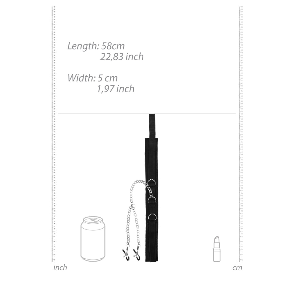 Ouch! Black & White Adjustable Velcro Collar With Nipple Clamps Black