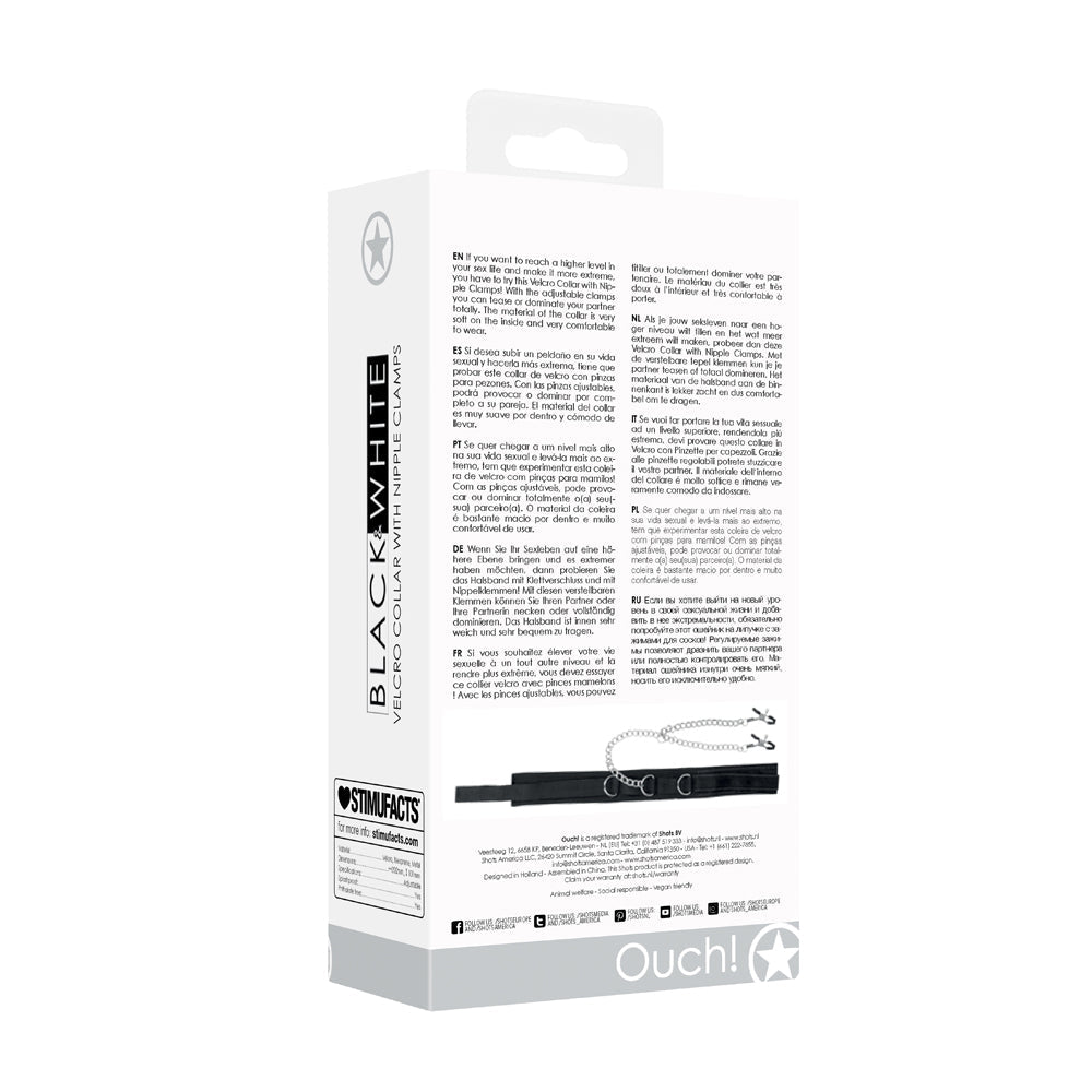 Ouch! Black & White Adjustable Velcro Collar With Nipple Clamps Black is backordered and will ship as soon as it is back in stock.